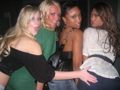 Holy skank patrol, Batman. Though a juicy splooge for the asian chic with the reddish brown hair would be doable.